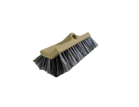 Softer black/white fiber mix is set in plastic block with 1 threaded handle hole Works with flow-through threaded handles 10" plastic block 2-1/2" bristle trim length UPC 365180610 / Boxed...