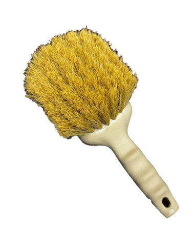 Natural Tampico bristles hold more water than nylon or plastic Softens when wet - popular for washing softer and finished surfaces 2" bristle trim length 8" Plastic Handle UPC 365200108...